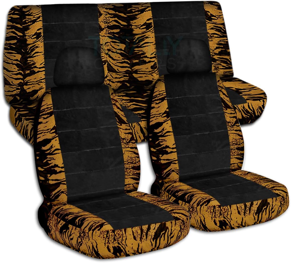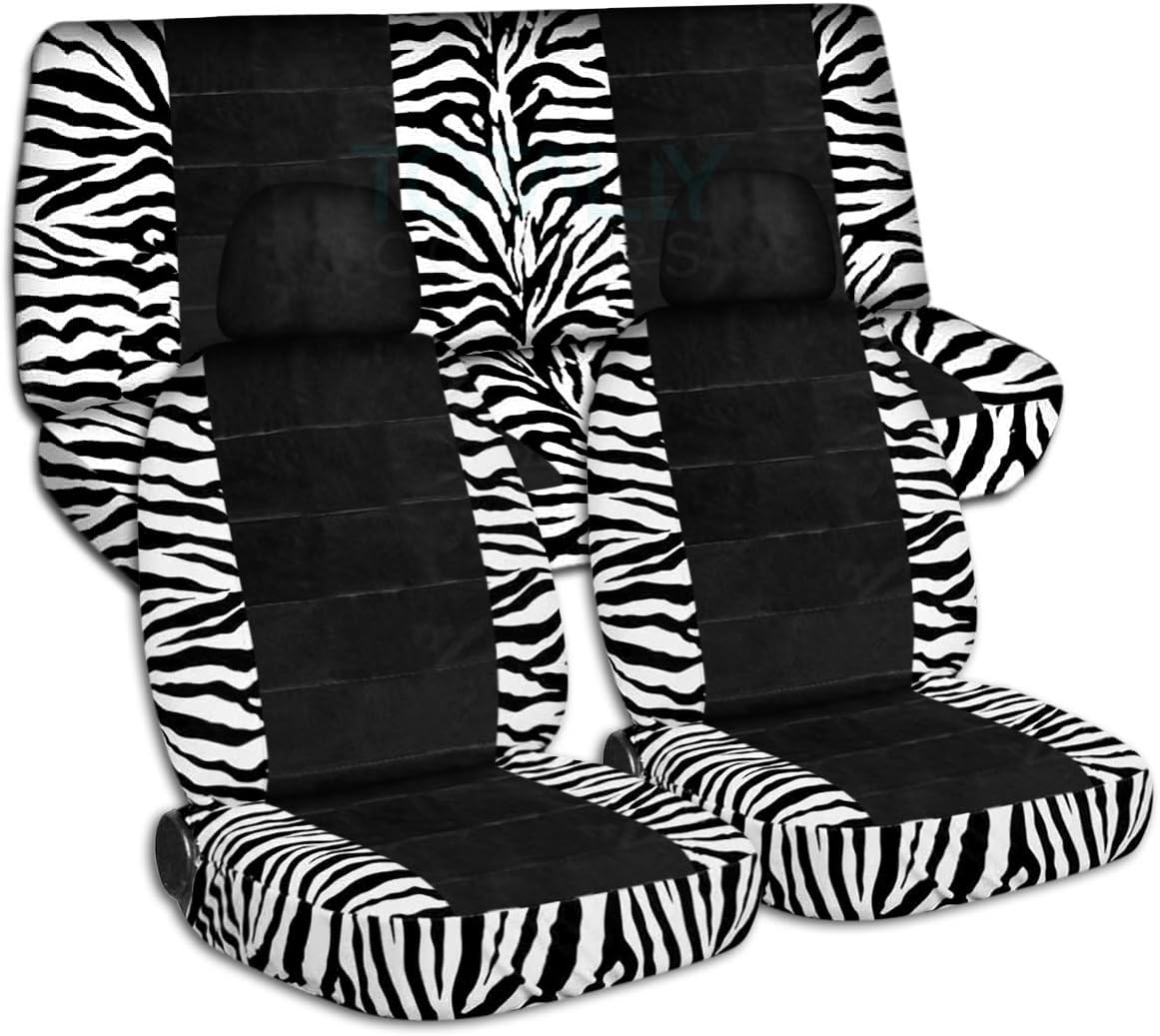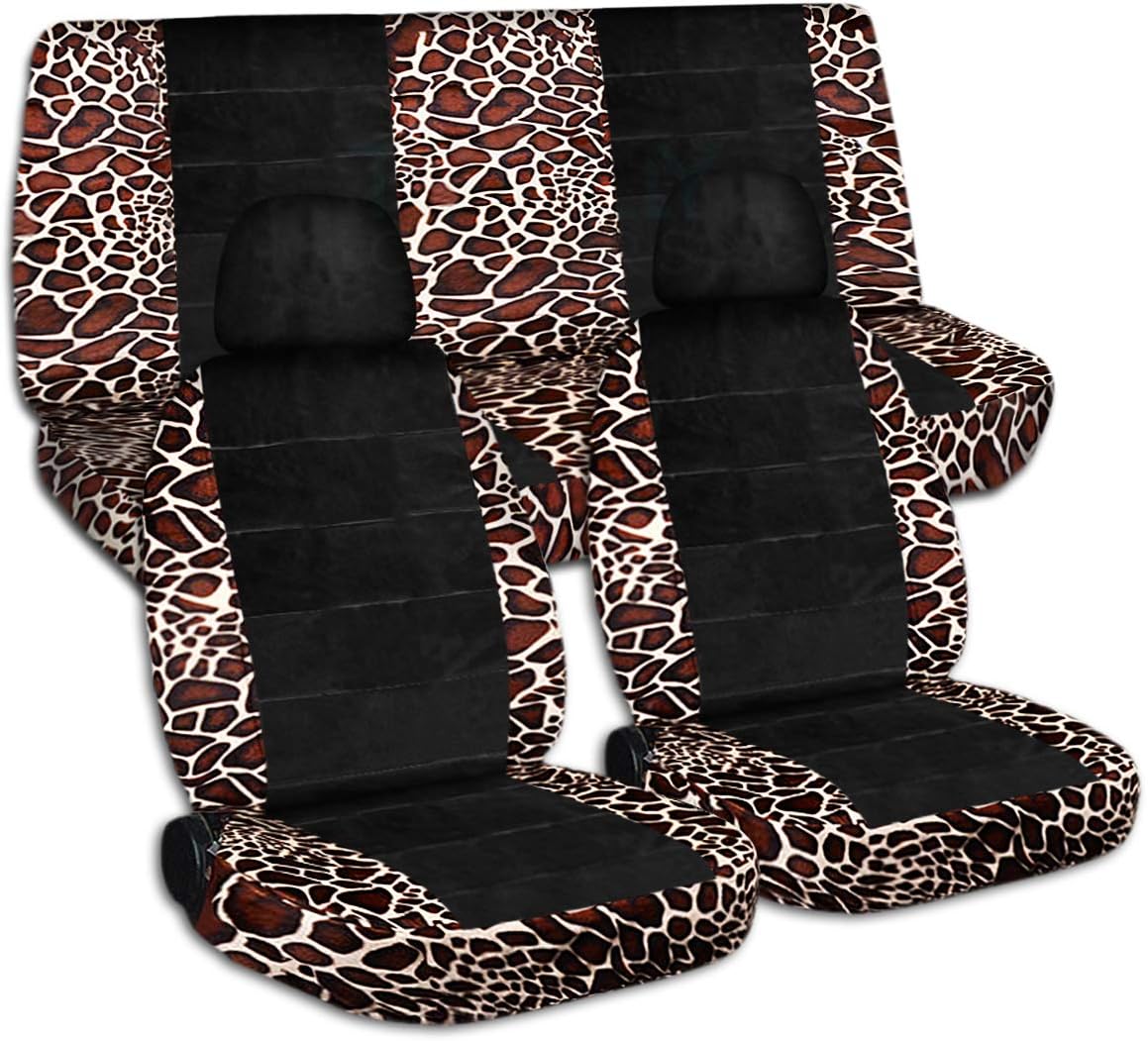 A full set of front and rear, pink-black cow and black car seat covers with 2 front separate headrest covers. Be sure to visit our storefront ("Totally Covers") where you can find the largest selection of seat covers, to satisfy even the most demanding of tastes. If you can't find what you are looking for, please contact us ("Totally Covers") We can make seat covers for ANY car, truck, van, RV or SUV in a variety of 145 colors and prints, and even add your name/text and logo/design on them!